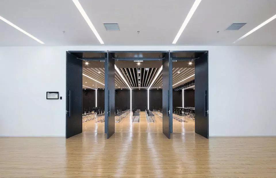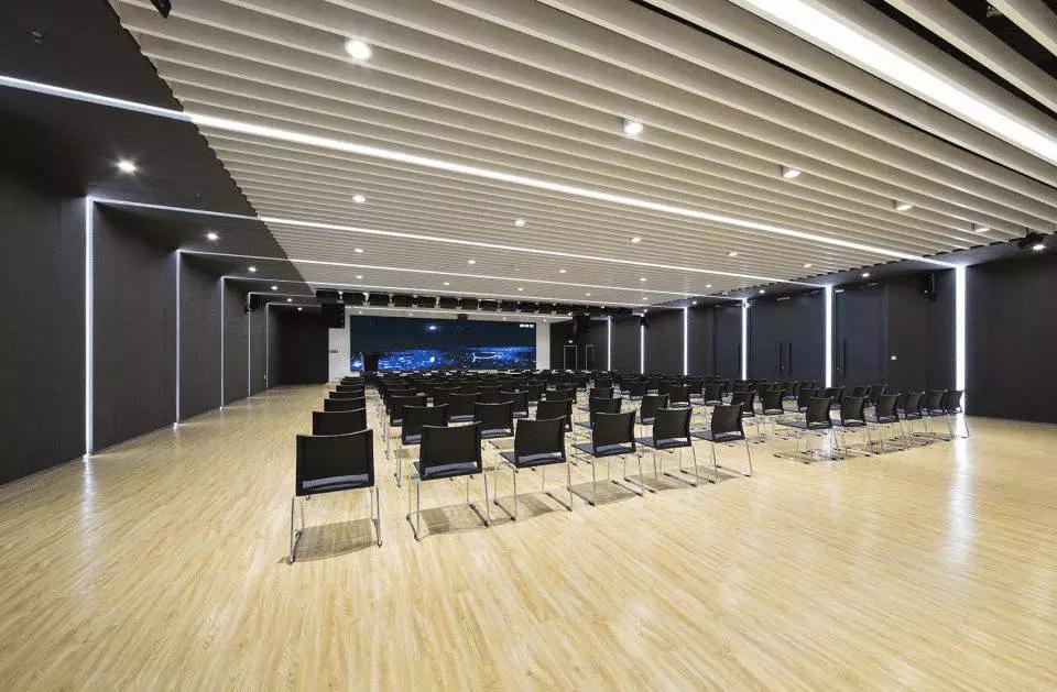 不同的空間內(nèi)容對(duì)應(yīng)不同的材質(zhì)氛圍,從色彩到質(zhì)感,再到意象化的裝飾,我們依據(jù)大堂、會(huì)議、休息室、中庭等不同空間尺度與空間內(nèi)容營(yíng)造新穎豐富、恰如其分的空間氛圍。溫暖的木色、混凝土板、白色大理石和白色乳膠漆為主要材料,其中報(bào)告廳大異其趣,優(yōu)雅高貴的深灰色布藝軟包與報(bào)告廳的相對(duì)集中和封閉性相得益彰。我們依托原有建筑空間序列,如大堂-電梯廳-等候區(qū)-多功能廳-VIP室-展廳,調(diào)整改變室內(nèi)設(shè)計(jì)的溫度與濃度,為原本純功能理性化的空間組織蒙上一層魅力面紗,讓功能化的“經(jīng)過(guò)”變?yōu)橐淮尾簧岬鸟v留與感受。